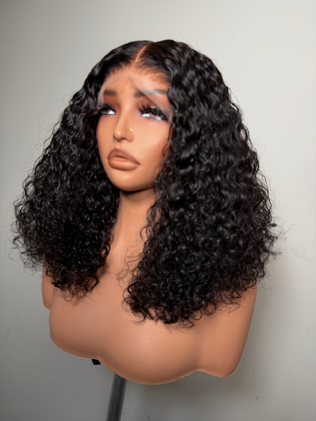 - 18” unit customized with soft layers, now sitting at a 16” finish, creating a full, defined, face-framing curly look.