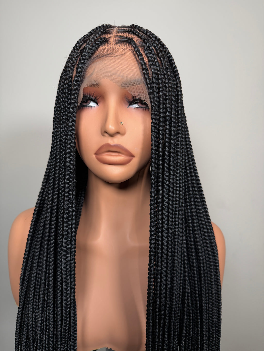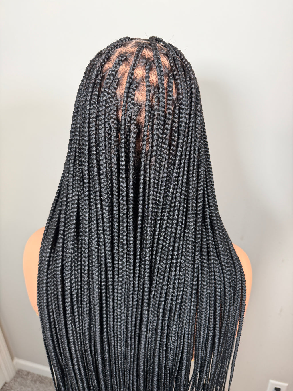 34” Glueless Full Lace Knotless Braided Wig – Natural Black